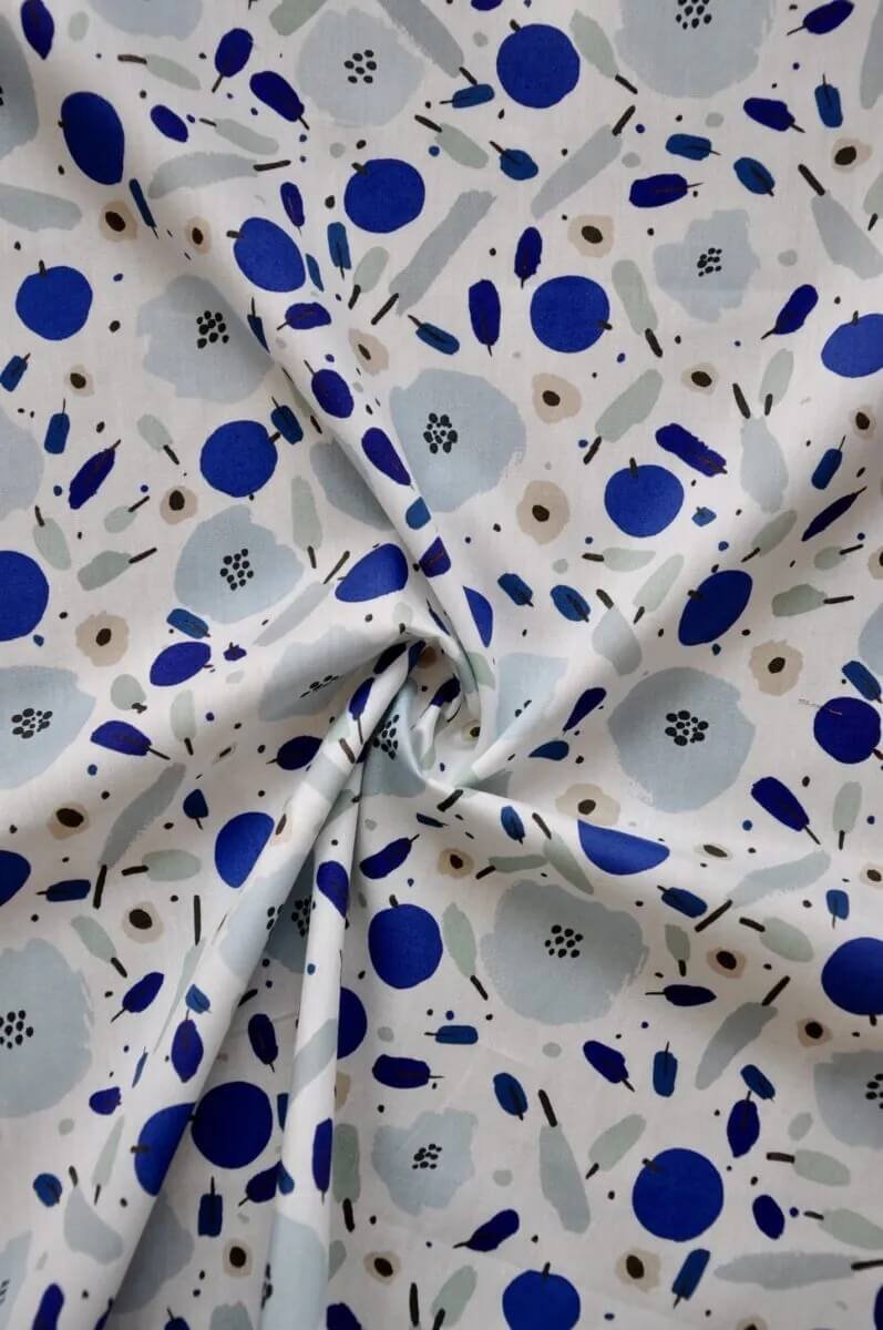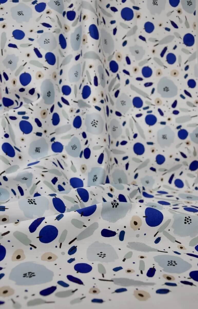 Designer Kanako Takeda is a born and raised Tokyo-ite! She continues to live in the sprawling metropolis with her young family and create her beautiful designs. Kanako has a love for colours and shapes that disrupt the norm and will make you pause for a moment to take them in. She creates in a variety of mediums, from gouache to watercolour, and cut paper before getting her designs digitally printed on the fabric. The patterns she creates are inspired by motifs found in nature and the things she sees around her.