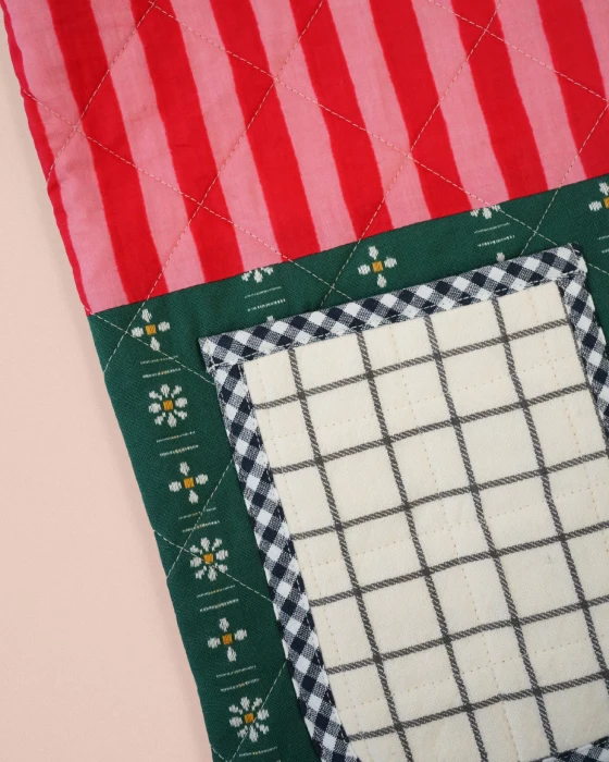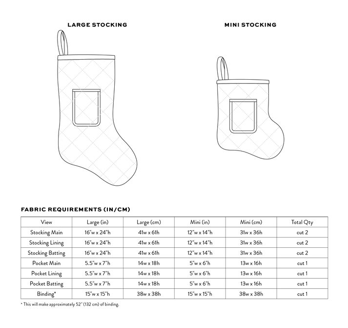 The Quilted Pocket Stocking is designed for light to mid weight woven fabrics like quilting cottons, linen, and blends.