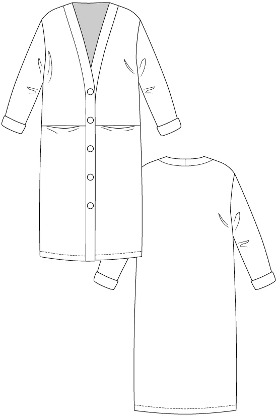 Choose a medium weight or heavy fabric with 20 – 40% stretch. For example terry, sweatshirt jersey or a heavier teddy or cable knit. Be careful with fabrics that are very drapey and soft, as they might make the pockets look untidy. In such case, consider omitting the front pockets. For the pocket bags, pick a medium weight, sturdy knit fabric that matches your main fabric. Ponte is a great choice, but make sure your pocket bag fabric isn’t heavier than the main fabric. You can also use your main fabric for the pocket bags.