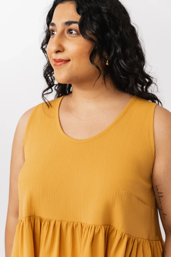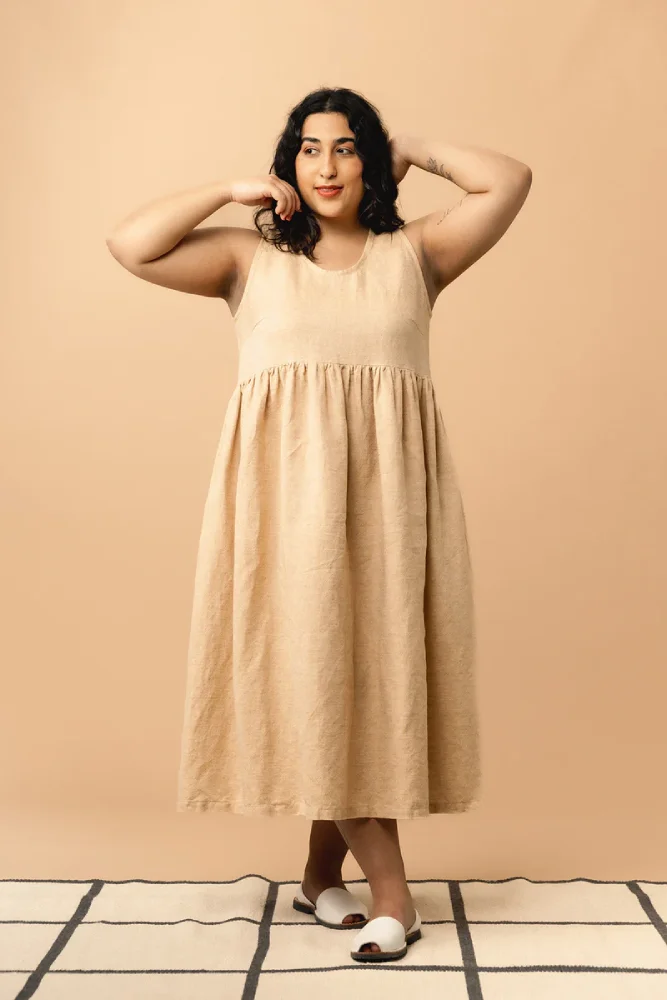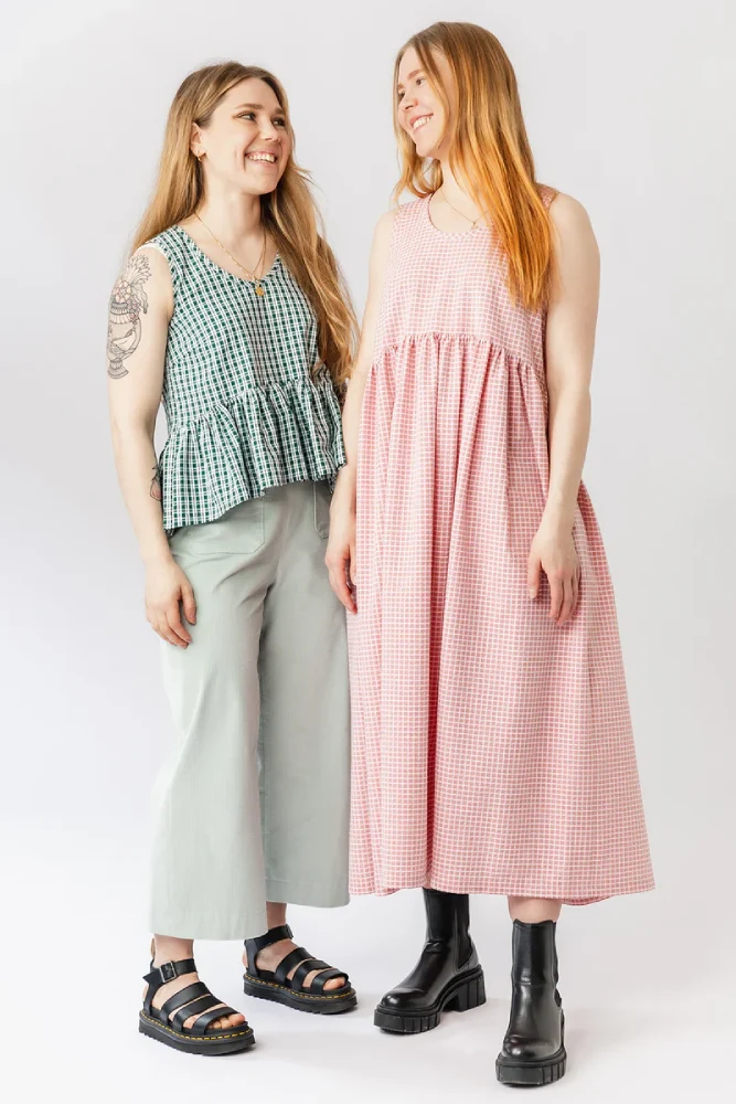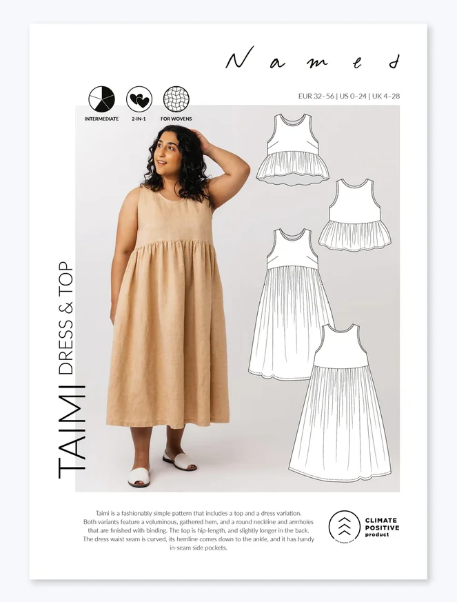 Taimi is a fashionably simple sewing pattern that includes a top and a dress variation.