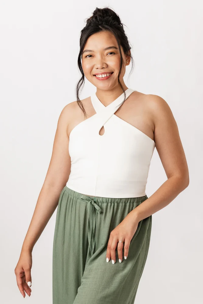 Ulpu is a delightfully simple yet interesting top pattern! The straps of the top cross in front, creating a beautiful keyhole detail on the neckline.