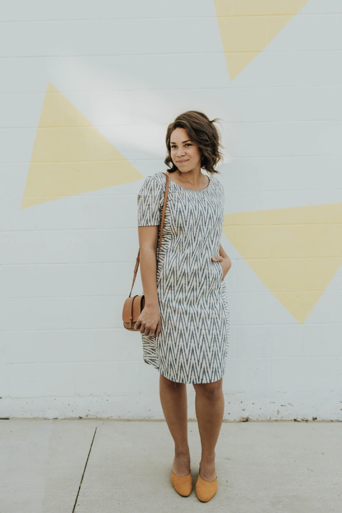 The Fremantle Frock is a clever design that will certainly fit to flatter any shape! This dress features contouring princess lines down the front of the dress, with some sneaky hidden pockets. A simple curved hem also gives this frock a bit of added flare and is perfectly suited for quilting weight cottons, chambray and Japanese linens.
